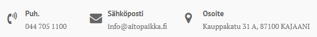 Hammaslääkäriasema Aito Paikka Oy tarjoaa laadukasta ja asiantuntevaa palvelua Kajaanissa viihtyisissä tiloissa. Meidät löydät aivan Kajaanin keskustasta Kauppakadulta, vuonna 2012 valmistuneesta rakennuksesta Seminaarinmäeltä. Sijaintimme katutasossa mahdollistaa helpon ja esteettömän pääsyn myös liikuntarajoitteisille. Haluamme helpottaa asiakkaiden hammaslääkäripelkoa eri menetelmien avulla. Toivotamme kaikki asiakkaat lämpimästi tervetulleeksi!